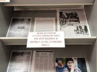 В НБ РИ открылась выставка: «ДЕНЬ ПАМЯТИ О СОТРУДНИКАХ МВД РИ, ПОГИБШИХ В НОЧЬ С 21 НА 22 ИЮНЯ 2004 Г.»
