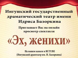 Ингушский государственный драматический театр имени Идриса Базоркина приглашает всех на онлайн показ спектакля по пьесе классика адыгской драматургии Ерджиба Мамия. Режиссер-постановщик Заслуженный деятель искусств Республики Адыгея Аслан Мугдинович Хакуй. В спектакле участвуют лучшие артисты театра: А. Евлоев, М. Нальгиев, А.…