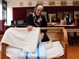В Государственном музее краеведения им. Т.Мальсагова, педагог школы № 1 города Назрань — Газдиева Ася Массаудиновна провела мастер-класс по укладыванию в люльку (ага) младенца