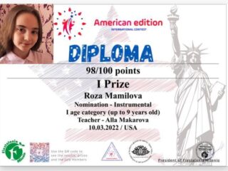 Ученица преподавателя музыки ЦШИ РИ Аллы Николаевны Макаровой приняла участие в Международном конкурсе "American edition". Участница представила во всей красе свой талант игры на пианино и была награждена Дипломом I степени, набрав 98 баллов из 100. Эту победу юная пианистка…